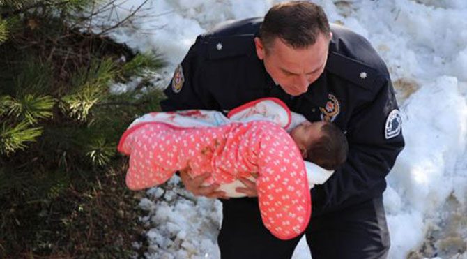 Kazada 1 kişi öldü, biri 3 aylık bebek 5 kişi yaralandı. Polis kucağına aldığı Beyza bebeği ambulansa taşıdı.