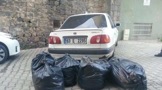 Kaçakçılık ve Organize Suçlarla Mücadele Şube Müdürlüğü ekipleri, Eyyübiye Mahallesi'nde Muzaffer U. yönetimindeki 63 E 2295 plakalı otomobili durdurdu. Yapılan aramada otomobilin bagajındaki poşetlerde 61 kilo esrar ele geçirdi. Esrara el koyan polis, sürücü Muzaffer U. otomobilde bulunan Yasemin A.'yı gözaltına aldı.
