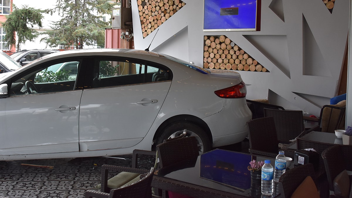 Bu arada kaza kafenin güvenlik kamerasına yansıdı. Görüntülerde, otomobilin geri geri gelirken bir anda hızlanarak bahçeye girdiği ve kafedekilerin panik yaşadığı görüldü.