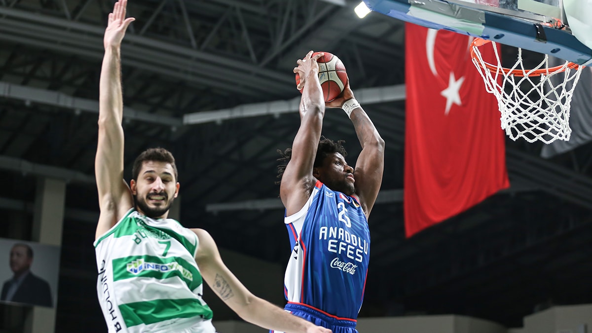 Türkiye Sigorta Basketbol Süper Ligi'nin 15. haftasında Anadolu Efes, deplasmanda Bursaspor İnfo Yatırım'ı 83-73 mağlup etti.
