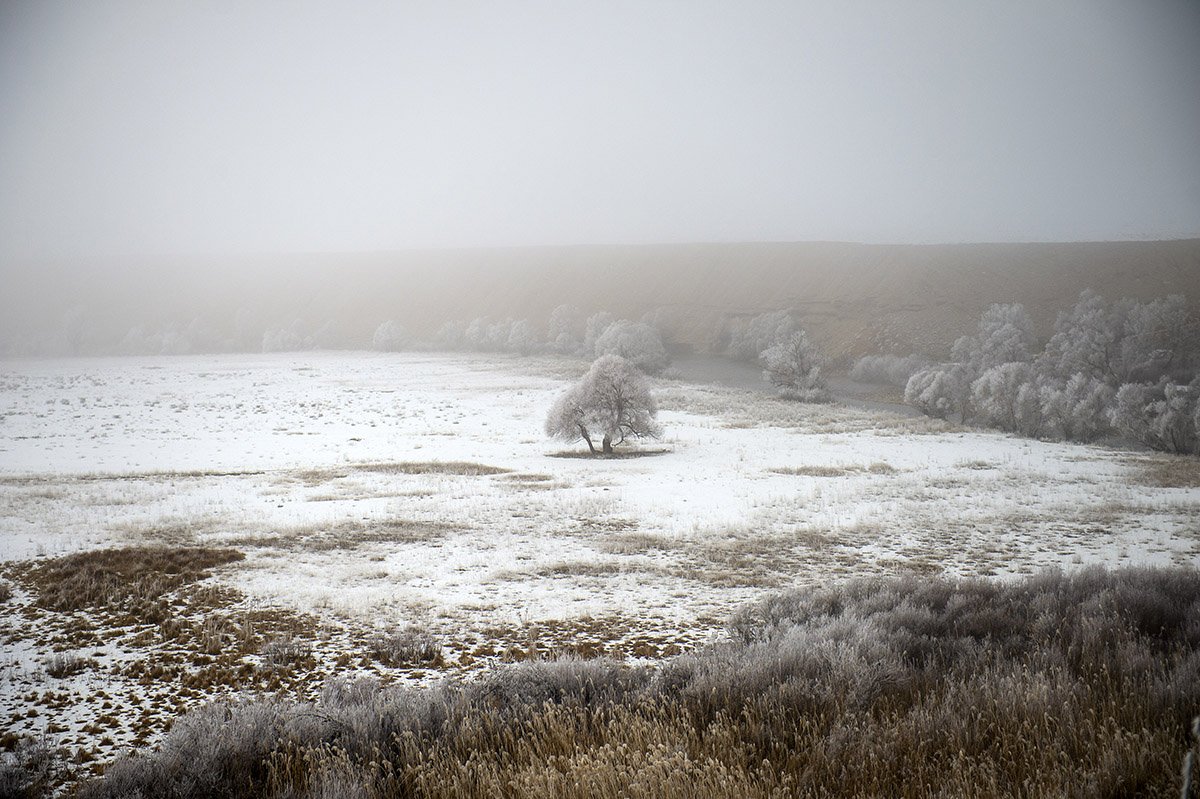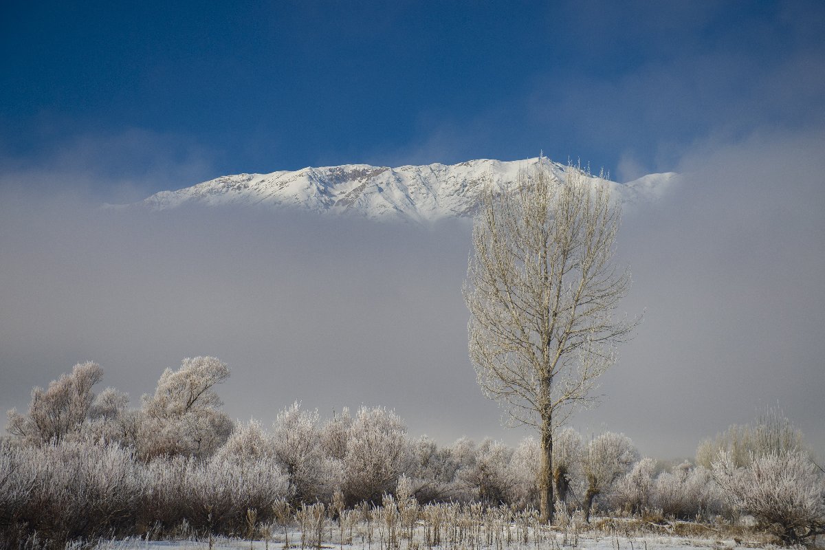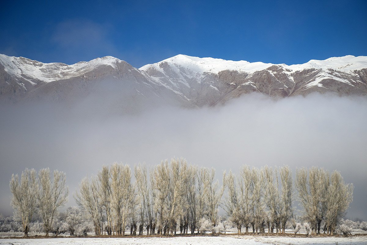 Kırağıyla güzel manzaraların oluştuğu ilçede, karlı Munzur Dağları'nın zirveleri de sisle kaplandı.