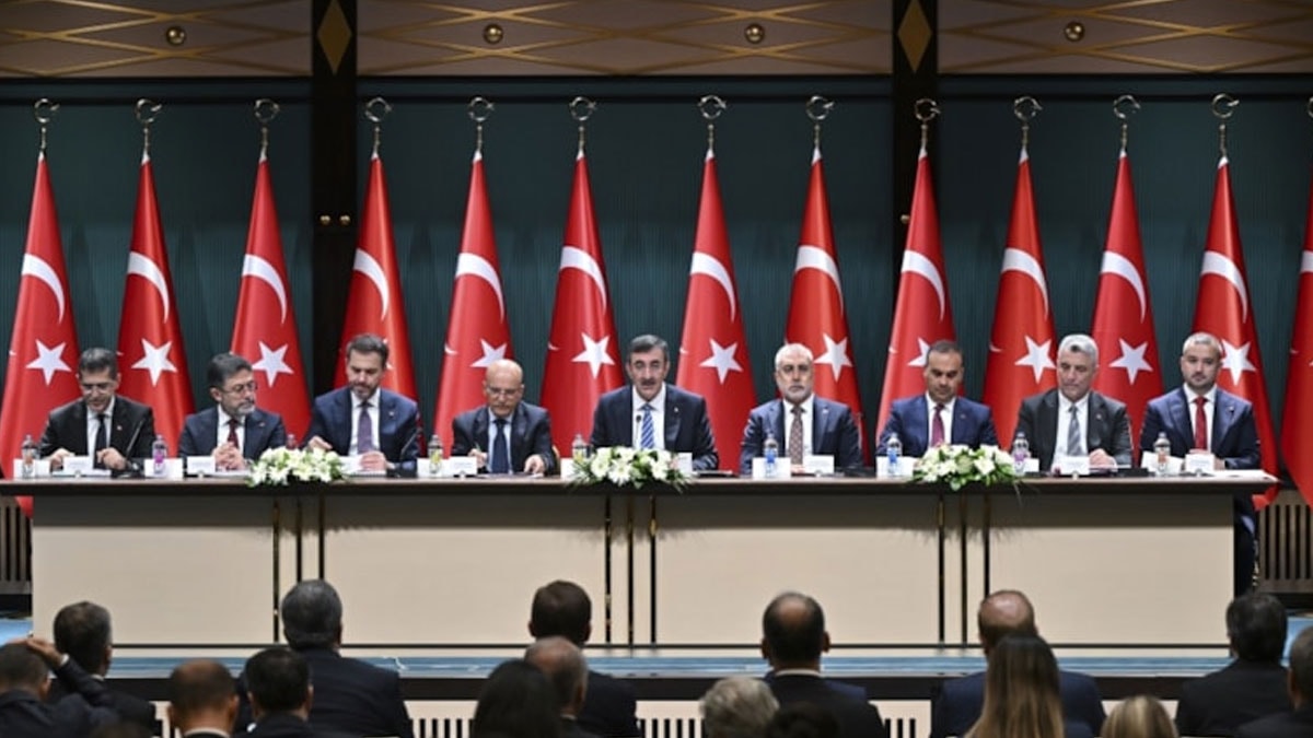 Orta Vadeli Program'daki bir kare dikkat çekti. Fotoğrafta Cumhurbaşkanı Yardımcısı Cevdet Yılmaz, Hazine ve Maliye Bakanı Mehmet Şimşek, Çalışma ve Sosyal Güvenlik Bakanı Vedat Işıkhan, Sanayi ve Teknoloji Bakanı Mehmet Fatih Kacır, Ticaret Bakanı Ömer Bolat, Enerji ve Tabii Kaynaklar Bakanı Alparslan Bayraktar, Tarım ve Orman Bakanı İbrahim Yumaklı, Cumhurbaşkanlığı Strateji ve Bütçe Başkanı İbrahim Şenel ile Türkiye Cumhuriyet Merkez Bankası (TCMB) Başkanı Fatih Karahan yer aldı.