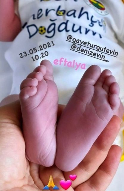 'Beni Affet' dizisinde tanışıp, aşk yaşamaya başlayan oyuncu Gaye Turgut Evin ile Deniz Evin, ilk bebeklerini kucaklarına aldı. Çift, bebeklerine Eftelya ismini koydu.