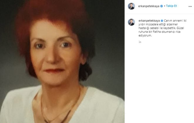 Erkan Petekkaya, geçen yıl Altınoluk sahilinde annesiyle yürüyüş yaparken görüntülenmişti.Oyuncu Erkan Petekkaya'nın uzun süredir Alzheimer tedavisi gören annesi Şerife Petekkaya hayatını kaybetti.