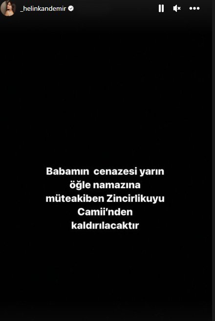 Instagram hesabından paylaşım yapan 18 yaşındaki oyuncu, "Babamın cenazesi yarın (bugün) öğle namazına müteakiben Zincirlikuyu Camii'nden kaldırılacaktır" dedi.
