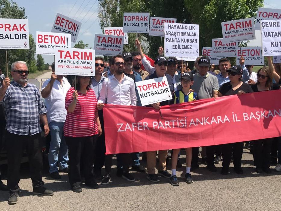 Zafer Partisi Genel Başkanı Prof. Dr. Ümit Özdağ, Ankara İl Teşkilatı üyeleriyle birlikte Ankara Üniversitesi Veteriner Fakültesine ait araştırma çiftliğinin TOKİ'ye verilmesini protesto etti.