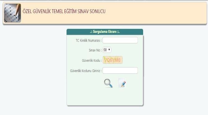 ÖZEL GÜVENLİK SINAV SONUÇLARINI SORGULAMA EKRANI