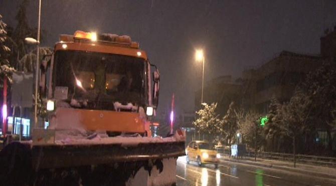 Mehmet İlkay ÖZER İstanbul, (DHA) - İSTANBUL`da karla karışık yağmur ve kar yağışı etkili olurken, bir yandan da karla mücadele çalışmaları sürüyor. İstanbul Büyükşehir Belediyesi`ne bağlı ekipler ulaşımın aksamaması için ana yollarda kar küreme ve tuzlama çalışmaları yapıyor.