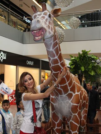 İstanbul’da ilk kez gösterilen sergideki hayvanlardan oldukça etkilenen Özge Ulusoy; ‘Bunlar ne kadar gerçeğe yakın. Karanlıkta görsem ödüm patlar!’ dedi. Küçüklüğünde kendisine ‘zürafa’ dendiği de itiraf eden güzel manken; ‘Bana küçükken zürafa derlerdi. Burada gerçek boyutunu da görmek çok güzel oldu. Demek ki beni buna benzetiyorlarmış’ diye konuştu.