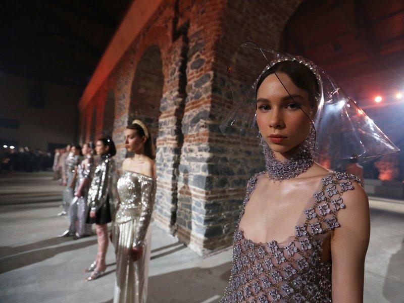 Sanat, cemiyet, spor ve moda dünyasının tanınmış simalarının akın ettiği gece, atmosferiyle de görülmeye değerdi. Zira defile alanına girdiğinizde size tıpkı Ayasofya'da olduğu gibi mozaikler karşılıyor. Tamamen Bizans döneminin havasının yansıtıldığı alanda loş ışıklar ve müzikler, sizi alıp o döneme götürüyor...