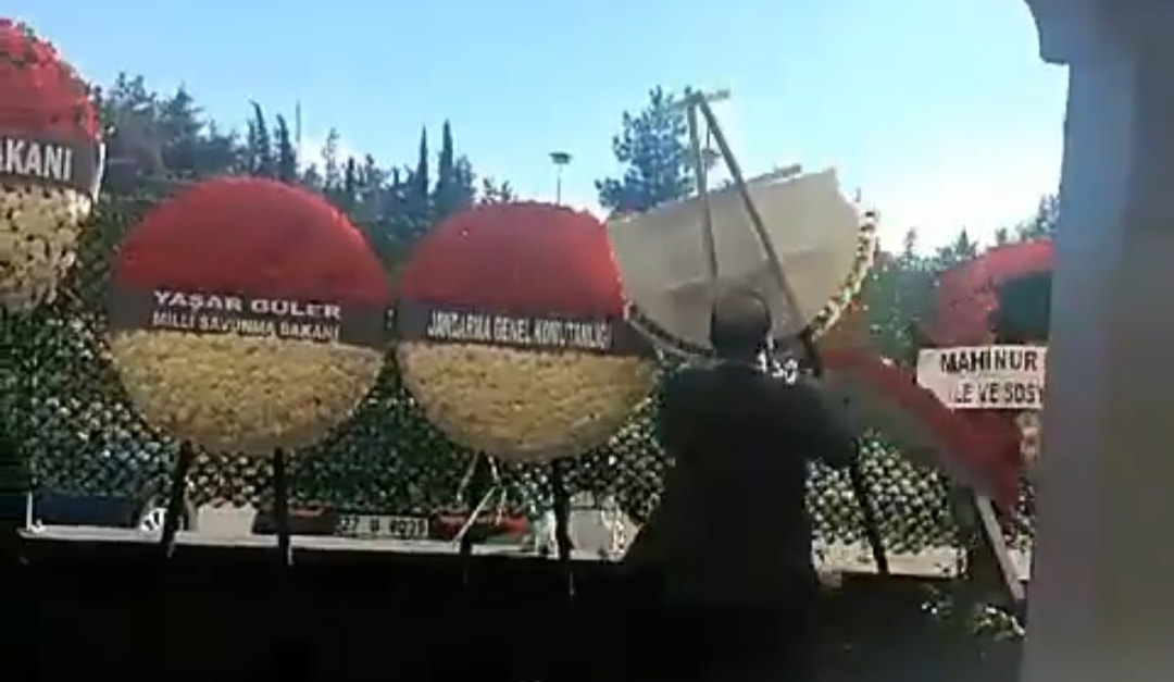 Gaziantep'te Şehit Piyade Uzman Çavuş Abdulkadir İyem'in cenaze töreninde, naaşın mezalığa gelişinin beklendiği sırada bir kişi çelenkler arasında bulunan CHP Genel Başkanı Özgür Özel'in çelengini parçalayıp tören alanı dışına attı.