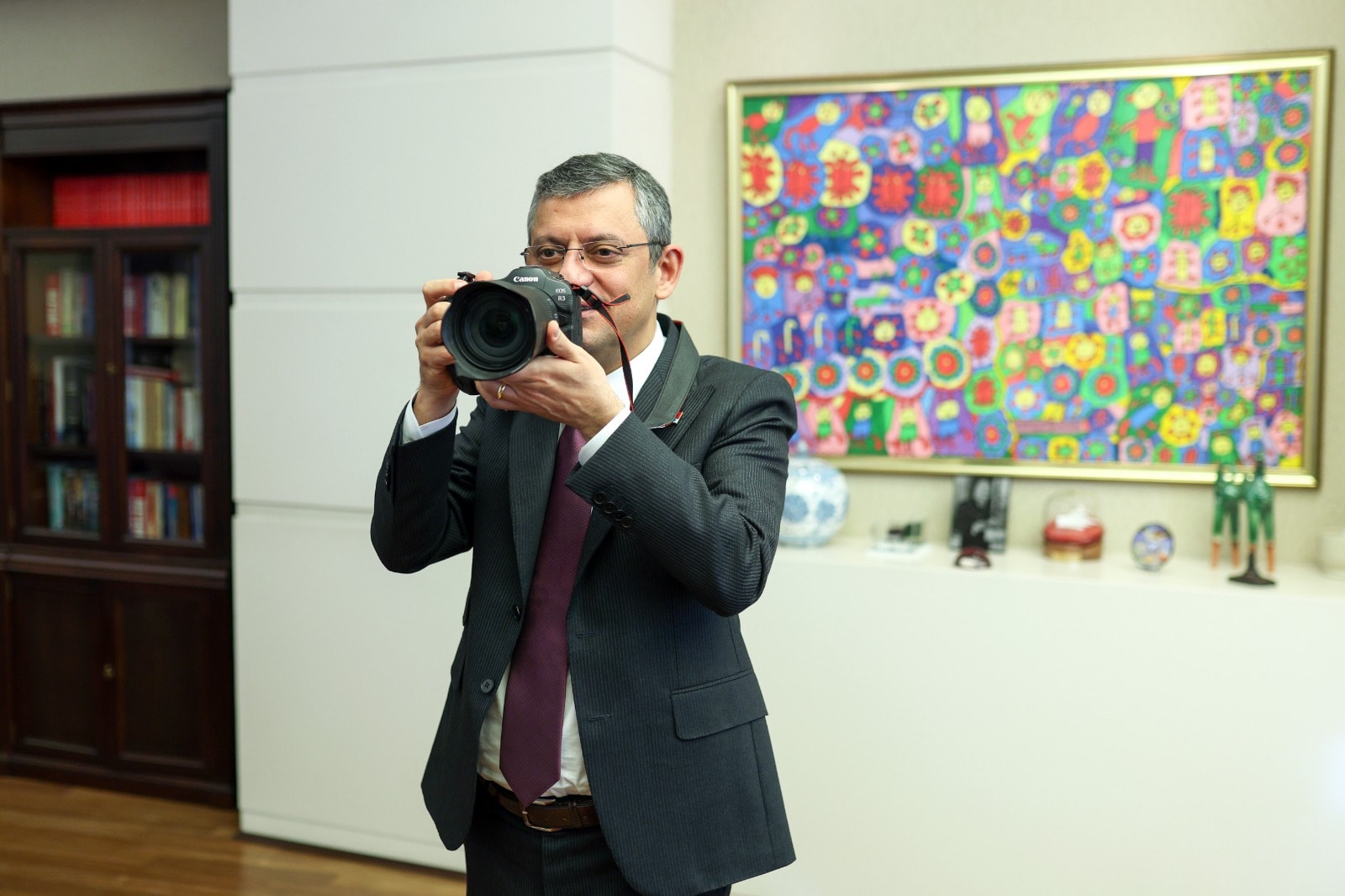 CHP Genel Başkanı Özgür Özel, TFMD Başkanı Rıza Özel ile yönetim kurulu üyeleri Adem Altan, Hamza Şahin, Mert Gökhan Koç, Bülent Uzun, Cenk Özel ve Necati Savaş'ı kabul etti. Özel, derneğin 'Yılın Basın Fotoğrafları Kataloğu' ve 'Foto Muhabiri Dergisi'ni inceleyerek, boynuna taktığı fotoğraf makinesi ile TFMD yönetim kurulunun fotoğraflarını çekti.