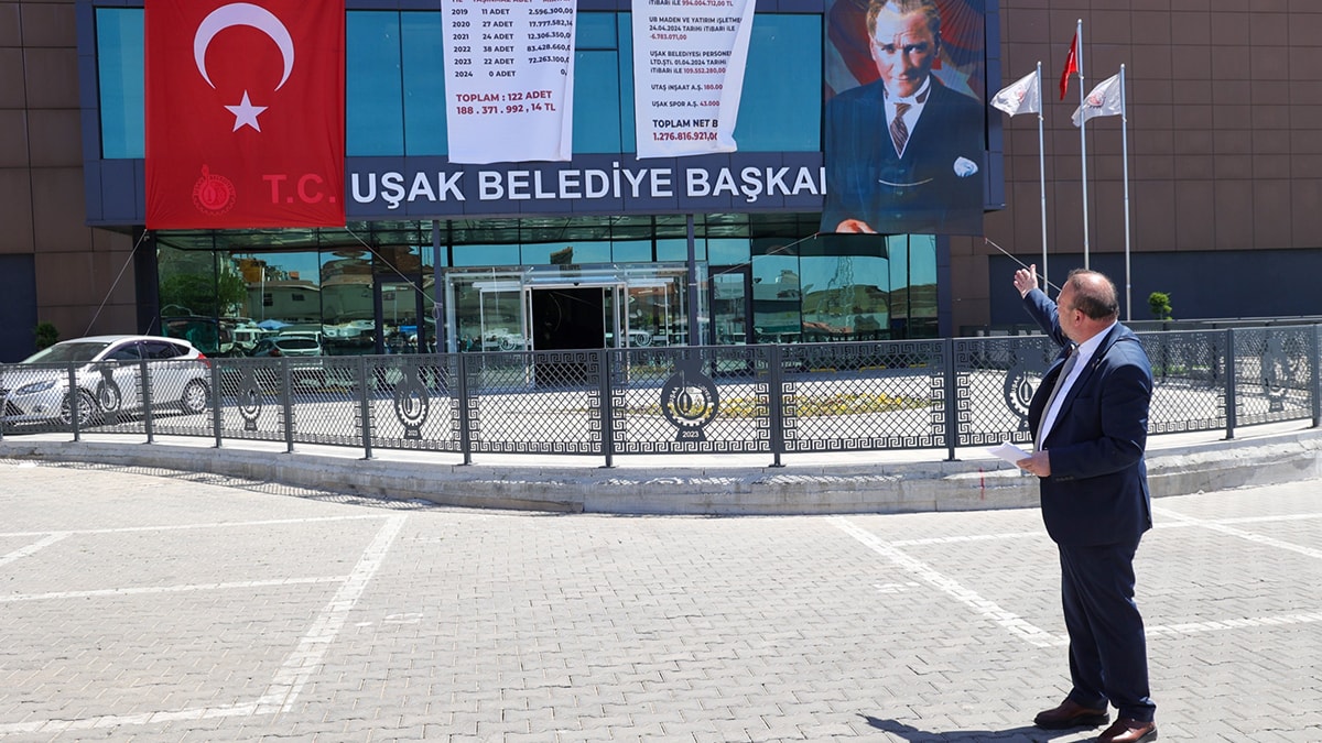 31 Mart yerel seçimlerinde yüzde 15 farkla başkanlığı kazanan ve AKP'li Mehmet Çakın'dan koltuğu devralan CHP’li Özkan Yalım, belediye binasına borç listesini astırdı. Buna göre Uşak Belediyesi’nin eski dönemden kalan toplam 1 milyar 276 milyon 816 bin 921 TL borcu bulunuyor.