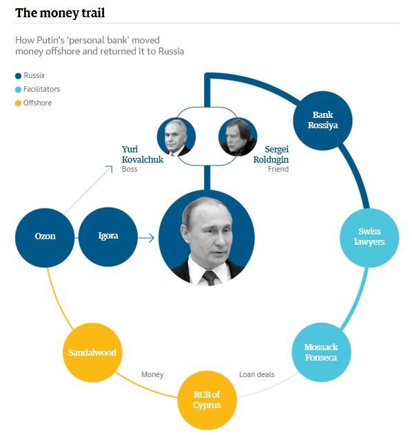 * Rusya Devlet Başkanı Vladimir Putin (2000-2008 arası birinci dönemi- 2012'den beri ikinci dönemi- Hesaplar yakın arkadaşları Arkady Rotenberg ve Boris Rotenberg, Sergey Roldougin adına açılmış)