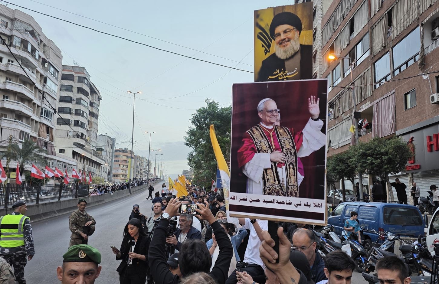 Ziyaret sırasında, Hizbullah’a bağlı El Mehdi İzcileri, yol güzergâhı boyunca tezahüratlar, Lübnan ve Vatikan bayrakları ile Hizbullah lideri Hasan Nasrallah’ın posterlerini taşıyarak kalabalığın öncüsü oldu. Papa’nın 2012’den bu yana Lübnan’a gerçekleştirdiği ilk ziyaret, İsrail-Lübnan sınırında tansiyonun arttığı bir döneme denk geliyor.