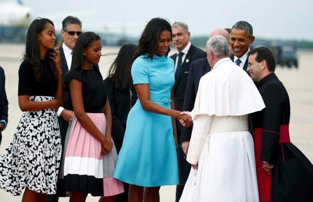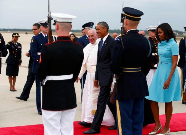 Küba ziyaretinin ardından, ABD'nin başkenti Washington’a gelen Papa Francis, 6 gün boyunca üç şehirde çeşitli görüşmeler yapacak. ABD ziyaretine Washington’da başlayan Papa Francis’i havaalanında ABD Başkanı Barack Obama, eşi Michelle Obama, kızları, ABD Başkan Yardımcısı Joe Biden ve üst düzey askeri yetkililer karşıladı.