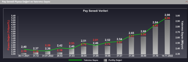 Son dönemde yaşanan ralli ile birlikte yatırımcıların pay senedi değeri de ekim ayındaki 4,45 trilyon TL seviyesinden dün itibariyle 5,06 trilyon TL seviyesine yükseldi.