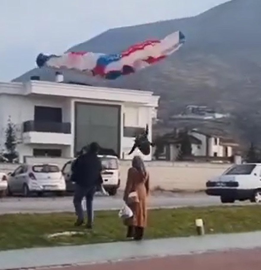 Öte yandan, yaşanan o anlar ise cep telefonu kamerası ile kaydedildi. Görüntülerde; paraşütçünün iniş yapacağı sırada dengesini kaybederek, yaklaşık 15 metre yükseklikten düştüğü anlar yer aldı.