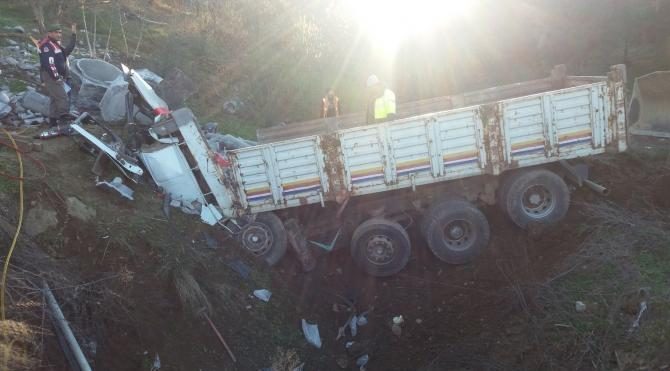 – BURSA’nın Yenişehir İlçesi'nde freni boşalıp şarampole yuvarlanarak kabin bölümü parçalanan kamyonun şoförü Ahmet Sarı, ağır yaralandı.