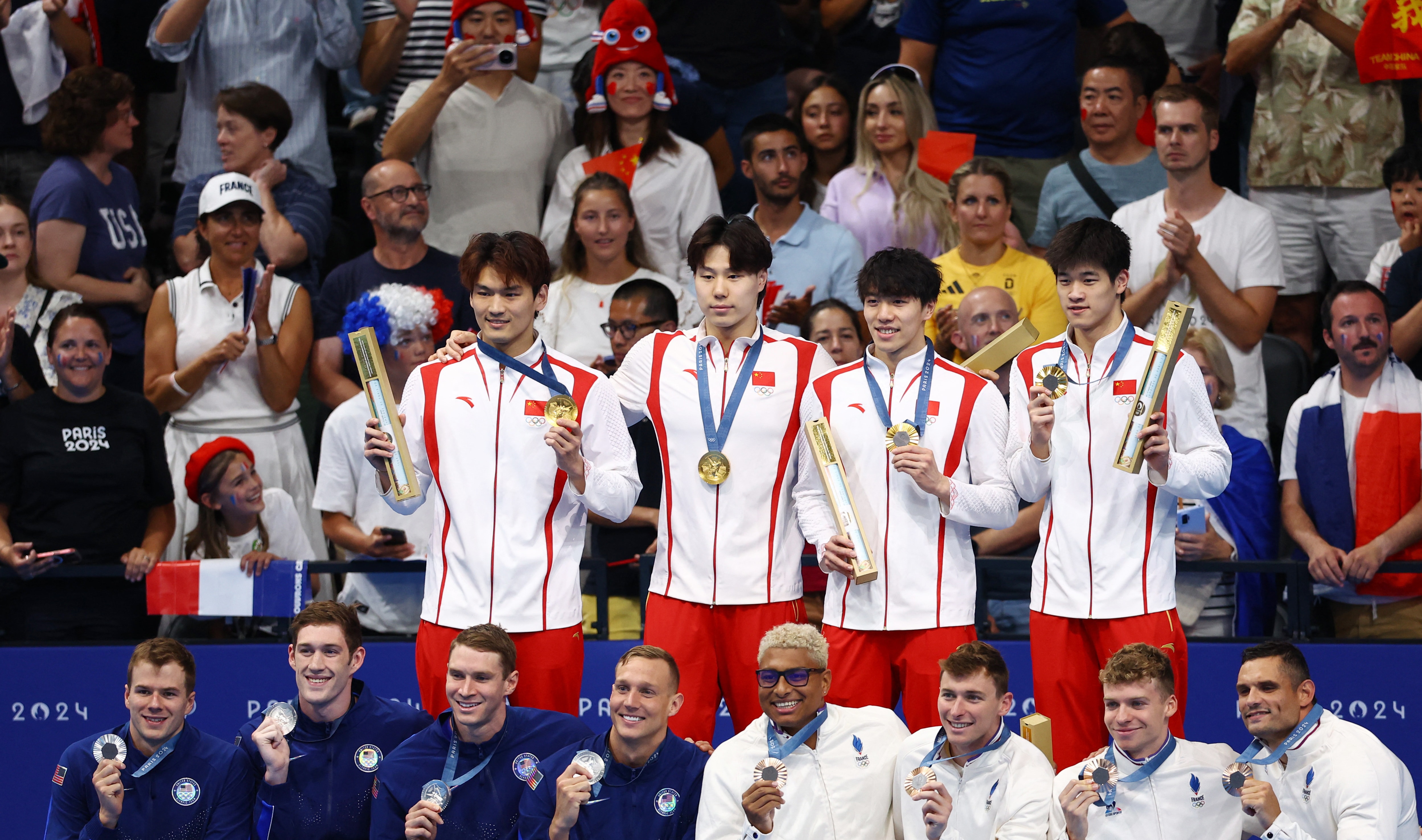Paris La Defens Arena'da gerçekleştirilen Paris 2024 Olimpiyat Oyunları yüzme branşı erkekler 4x100 metre karışık bayrak yarışı kategorisinde Çin, 3 dakika 27 saniye 46 saliselik süresiyle altın madalyanın sahibi oldu.
