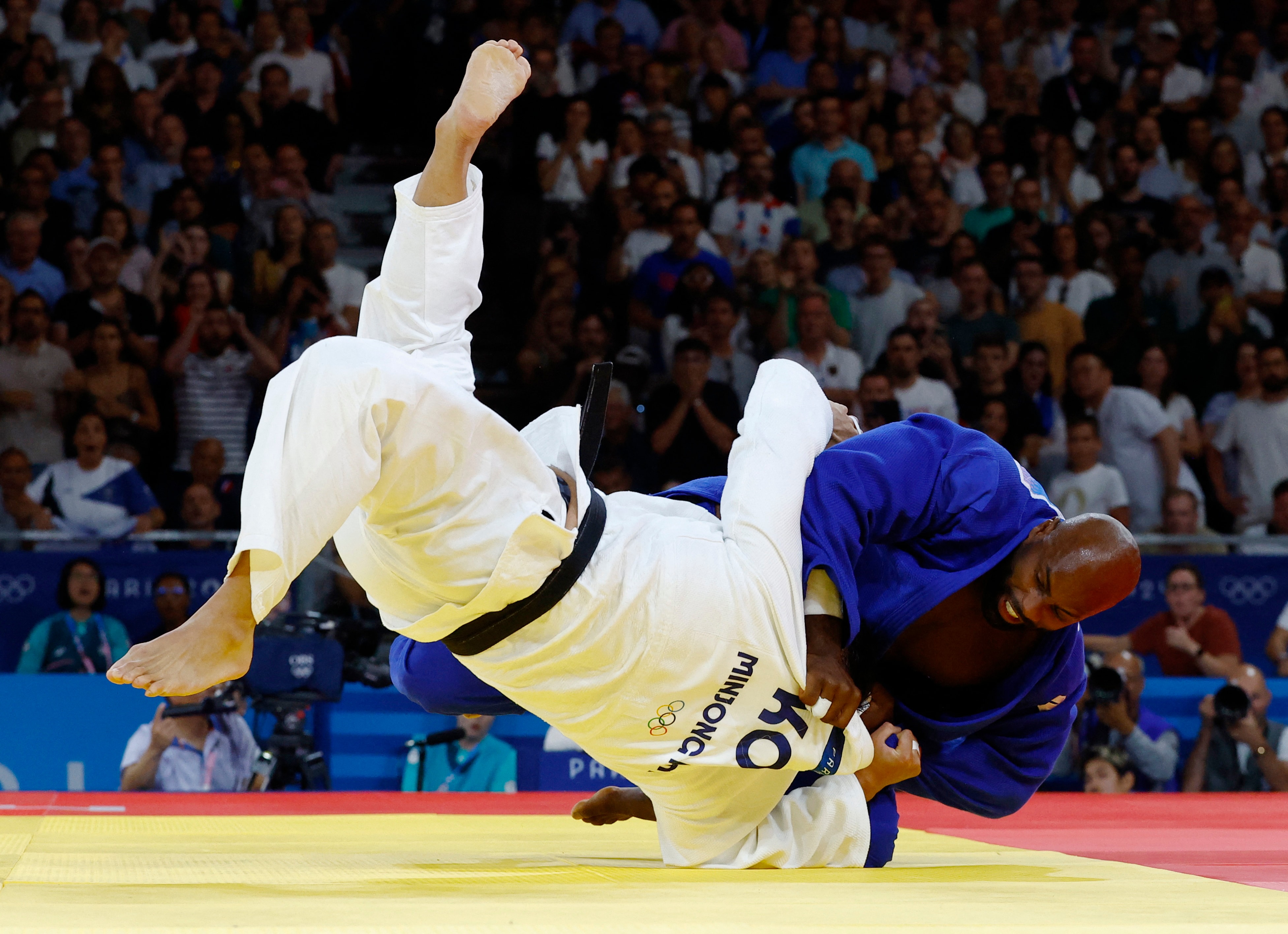 Champ de Mars Arena'da gerçekleştirilen ve milli sporcu İbrahim Tataroğlu'nun ikinci turda elendiği Paris 2024 Olimpiyat Oyunları judo erkekler +100 kilo müsabakaları finalinde Güney Koreli sporcu Minjong Kim'i yenen Teddy Riner altın madalyaya ulaştı.