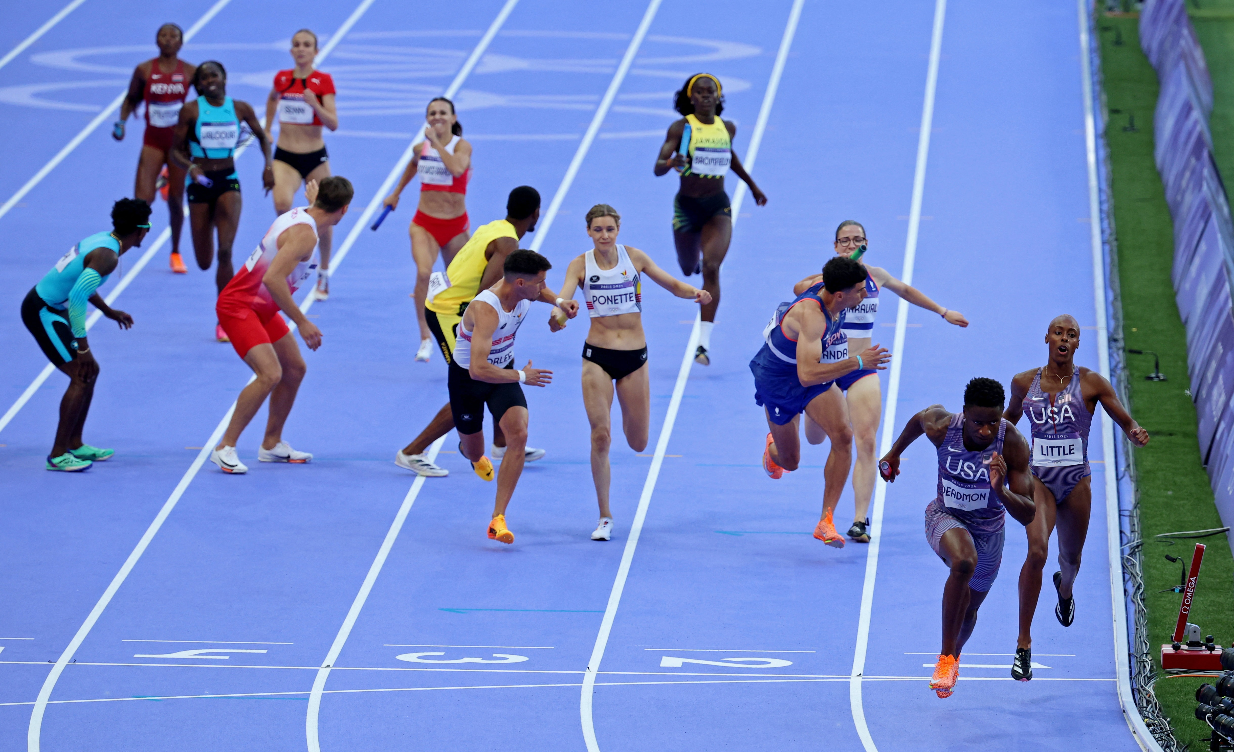 Fransa'nın başkenti Paris'teki Stade de France'ta Paris 2024 Olimpiyat Oyunları 4x400 Karışık Bayrak Yarışı'nın elemeleri yapıldı.