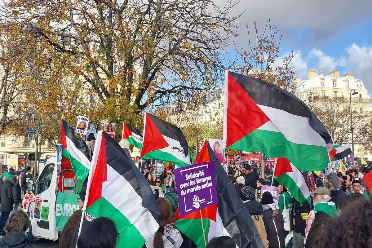 Fransa'da muhalefetteki Boyun Eğmeyen Fransa (LFI) Partisinden Milletvekili Farida Amrani, X sosyal medya platformu üzerinden, silah üreticisi Thales Group'un Paris'teki merkez binası önünde düzenlenen protestoya ait görüntüler paylaştı.
