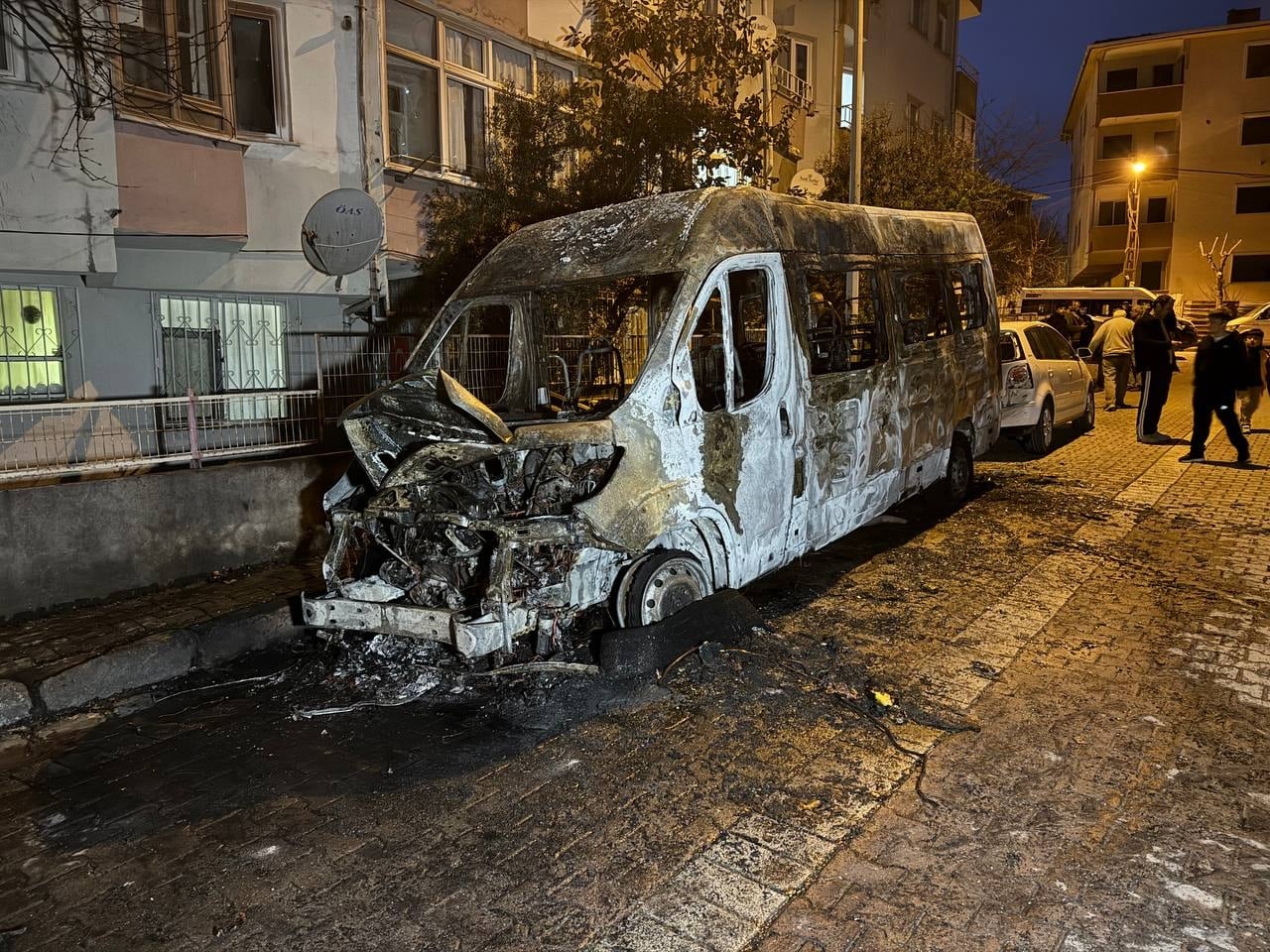 İtfaiye ekiplerinin müdahalesiyle yangın söndürüldü. Yangında servis aracı kullanılamaz hale gelirken, otomobilde hasar oluştu. Yangının çıkış nedeninin belirlenmesi için çalışma başlatıldı. Mahalle sakinlerinden Emin Kule, "Önce korna sesi gibi bir ses duydum. Ardından patlama sesleri gelince dışarı çıktım, aracın yandığını gördüm. İtfaiye ekipleri gelerek müdahale etti" dedi.