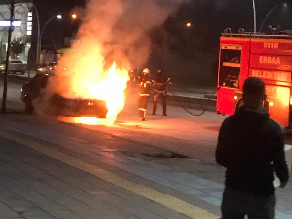 Kısa sürede otomobilden alevlerin büyüdüğünü görenler, durumu ekiplere bildirdi. İhbar üzerine bölgeye itfaiye ve polis ekipleri sevk edildi.