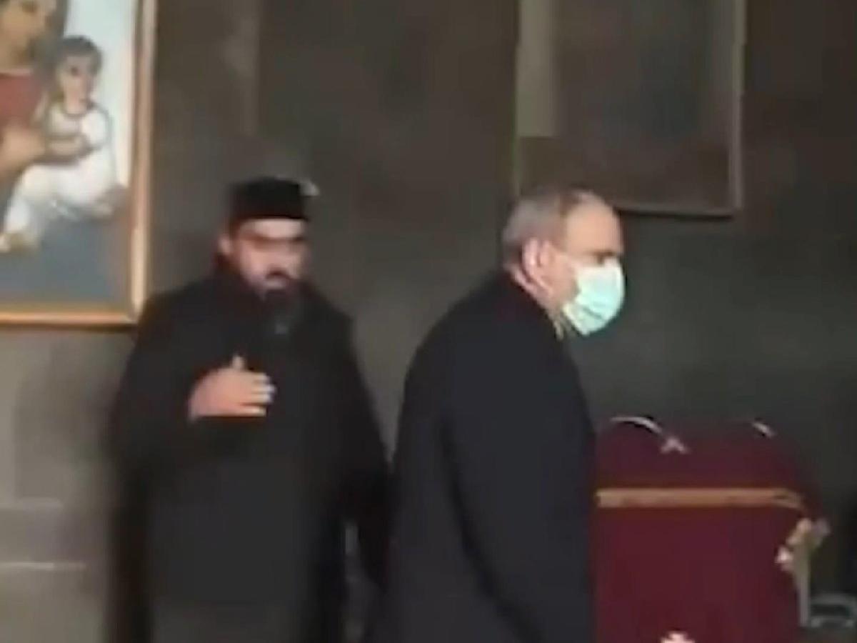 Paşinyan, kilisede ölen askerler için düzenlenen dini tören sırasında papaza elini uzattı. Papaz ise Paşinyan'a tepki göstererek önce elini vermedi, sonra da kapıyı gösterdi.