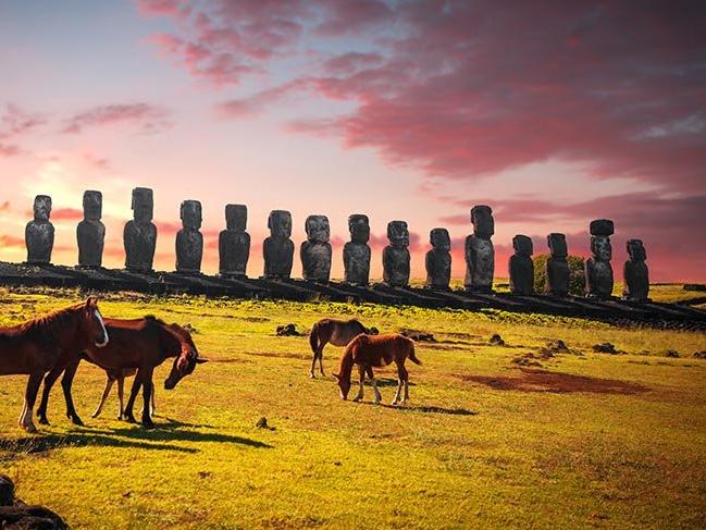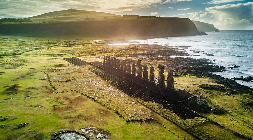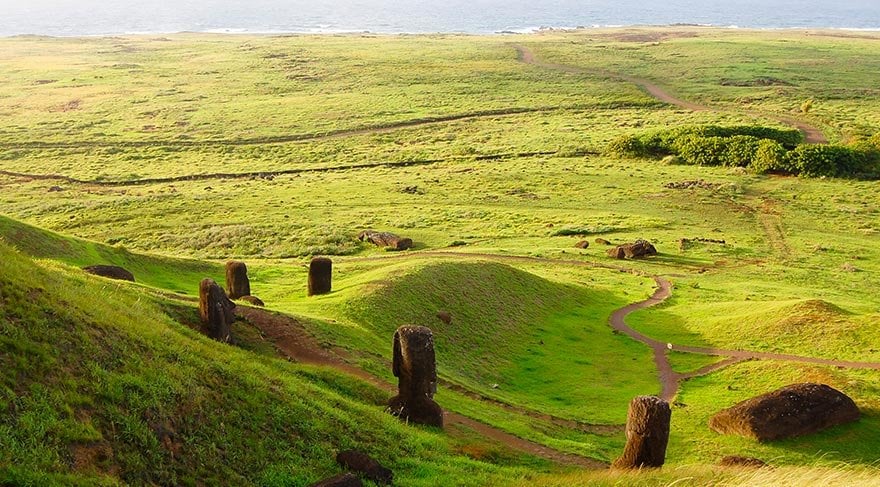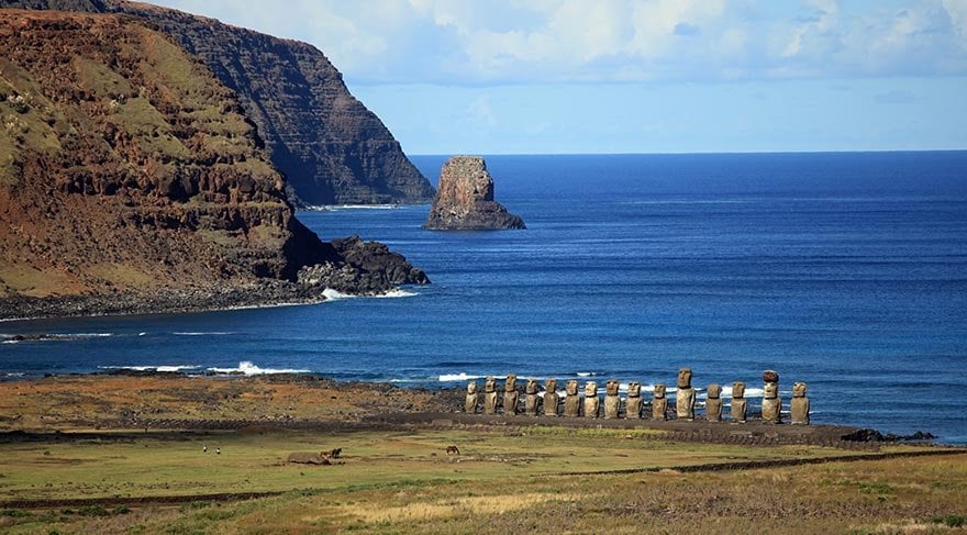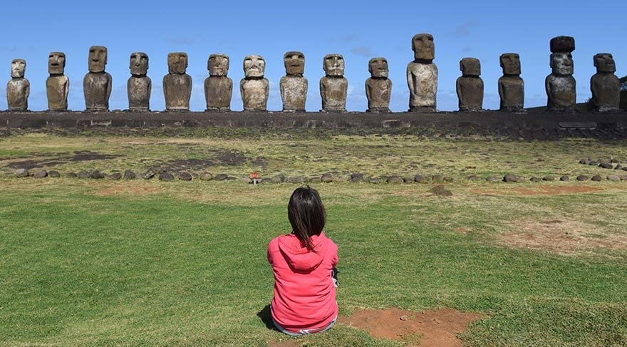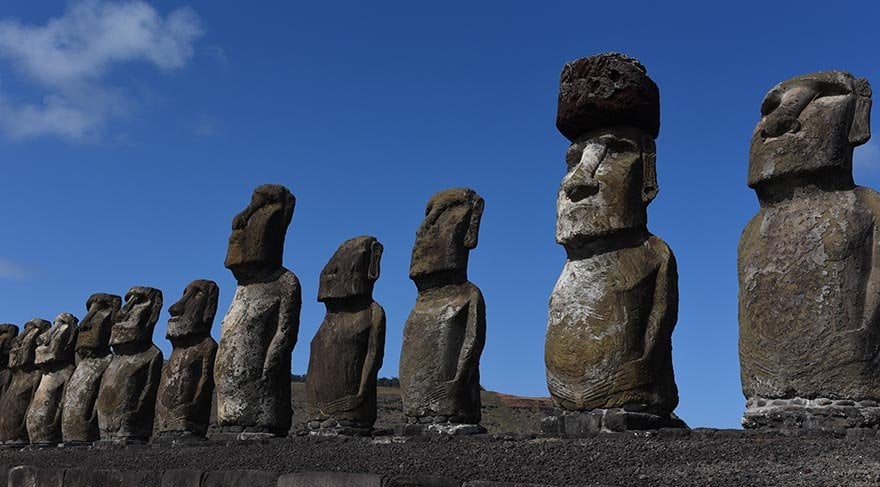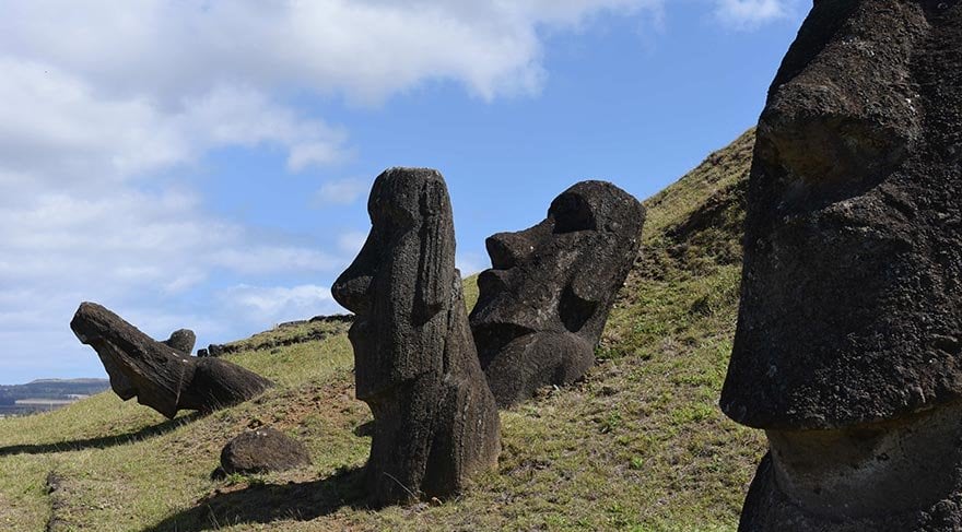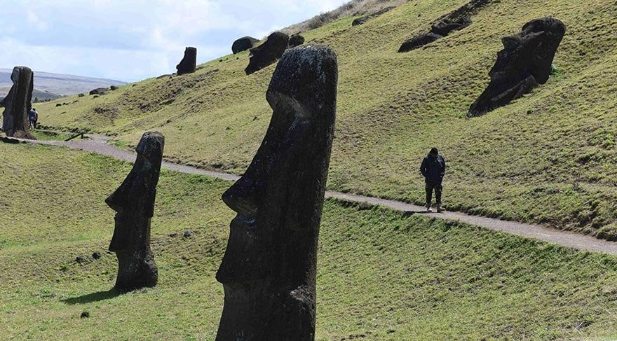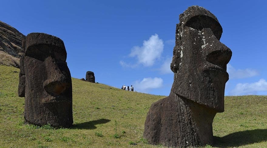 Ada'nın dünyaca ünlü bu taş heykelleri Moai diye adlandırılıyor.