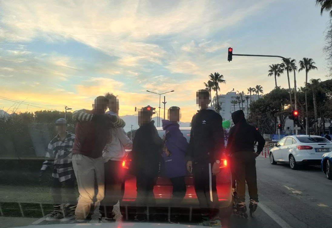 Otomobili çevreleyen çocukların ölüme davetiye çıkaran yolculukları Yavuz Özcan Parkı’ndan, müze önüne kadar devam etti. Bir köpeğinde kendilerine eşlik ettiği çocuklar, müze kavşağında tutundukları aracı bıraktıktan sonra yollarına Sahil Antalya Yaşam Parkı’nda doğru devam etti. İHA