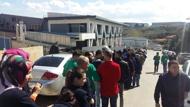 "Tuzla Serbest Bölge işçilerinin yemek sırası. 32 dakikadır sırada bekliyorum. Mesaimin başlamasına 28 dakika kaldı. İşçilere, bölgeye bağlı özel bir firma tarafından yemek veriliyor. Ama her gün binlerce kişi 1 saatlik yemek molasında dakikalarca sıra bekliyor. Geçen gün bizzat yediğim yemeğin içinden Paslı bir tel çıkıp damağımı kesti. Yemekler çok kötü. Normalde iki katlı bir yerdi yemekhane ve sıra beklenmiyordu. Fakat üst katı yeni bir dizayn için kapattılar ve bir buçuk senedir açılmadı. Arkadamdaki sıranın devamını da fotoğraf ile gönderiyorum. İşçilere uygulanan bu terbiyesizligin haber yapılmasını rica ederim. Bu kuyruğun sebebine gelince, Serbest Bölge içindeki işçilere yine bölgenin kendisine ait olan işletmede yemek verilmektedir. Firmaların kendi bünyesinde yemek yapmasına izin verilmiyor. Yani bizi buradan yemek yemeye mecbur bırakıyorlar. Yakınlarda da yemek yiyecek bir yer yok. Hele bir de kartınızı evde unuttuysanız o gün yemek yiyemiyorsunuz ve aç kalıyorsunuz. Yemekhanenin yanına bir kafe yaptılar. Firma sahipleri ve yöneticiler orada parasıyla yemek yiyor. Biz işçiler ise böyle kuyruklarda sıra bekliyoruz".