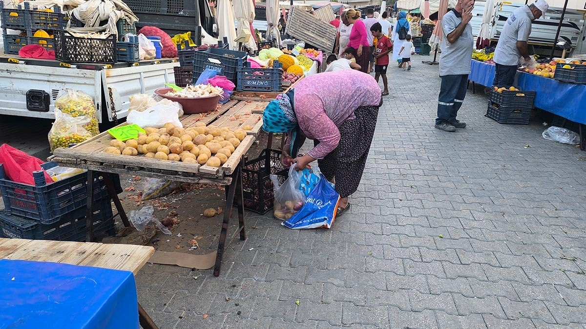 “Tarlada çalışıyorum, eşim asgari ücretli. İki çocuğumuz var, öğrenci. Maaş yetmiyor. O yüzden akşamüstü pazara geliyoruz. Fiyatlar neredeyse yarı yarıya düşüyor.”