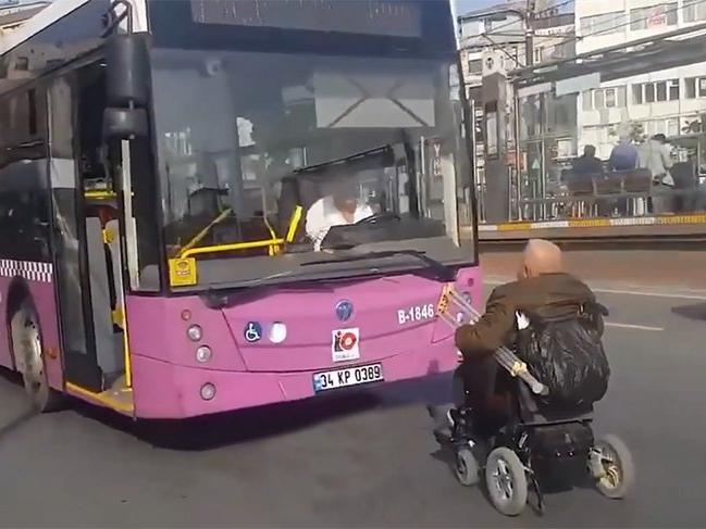 Önünde engelliler için uygundur amblemi bulunan otobüsün şoförü rampanın çalışmadığını iddia ederek rampayı açmayacağını söyledi. Yaşlı adam bu kez şoföre "yalan söylüyorsun, hepiniz yalan söylüyorsunuz" diyerek tepki gösterdi.