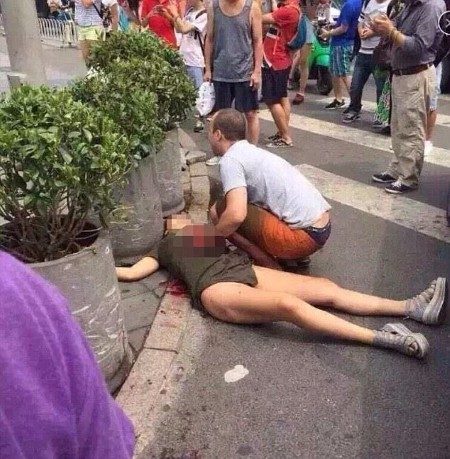 Unilad.com'un haberinde, adı yalnızca 'Gao' olarak geçen saldırgan, iddiaya göre, yolda yürüyen bir kadına eşinin Amerikalı olup olmadığını sordu, sonra da elindeki kılıçla çifte saldırdı.