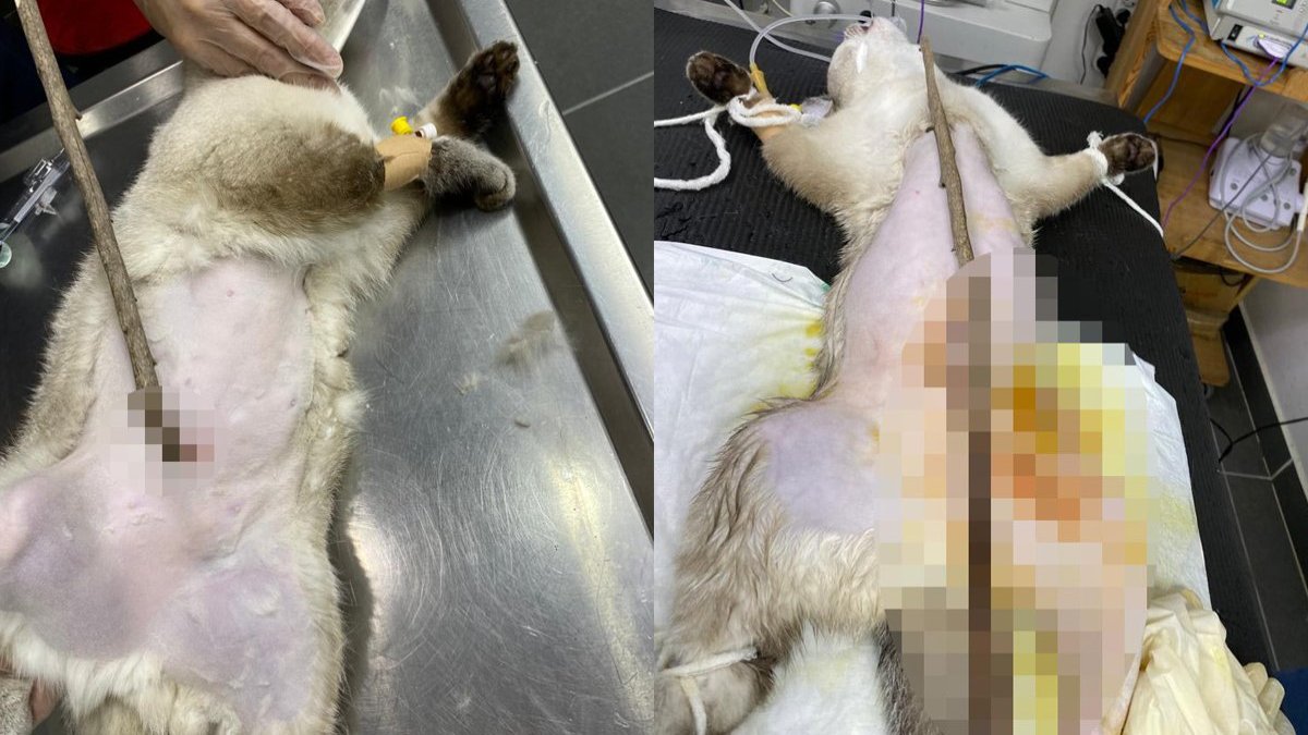 Kedinin sağlık durumunun iyi olduğunu belirten Veteriner Hekim Önder Alkan, "Karından girmiş, arka bacaktan çıkmış. Burada en önemli şey, fazla zedelenmemiş, müdahale edilmemiş çekilmemiş olması. Çekilmiş olsaydı bize gelemezdi, ölürdü. Acil olarak ameliyata aldık. Yabancı cismi yerinden çıkardık. Dokuları onardık. Birkaç damarda sıkıntı vardı onları da tamir ettik. Bu nadir olarak gözüken bir şey. Bize de ulaşamayabilirdi. Bağırsakları patlatabilirdi. İdrar kesesi kaslar. Bunların hepsini onardık. Ana damarların kenarlarından geçmiş. Başarılı bir operasyonla dalı çıkardık dedi." (DHA)