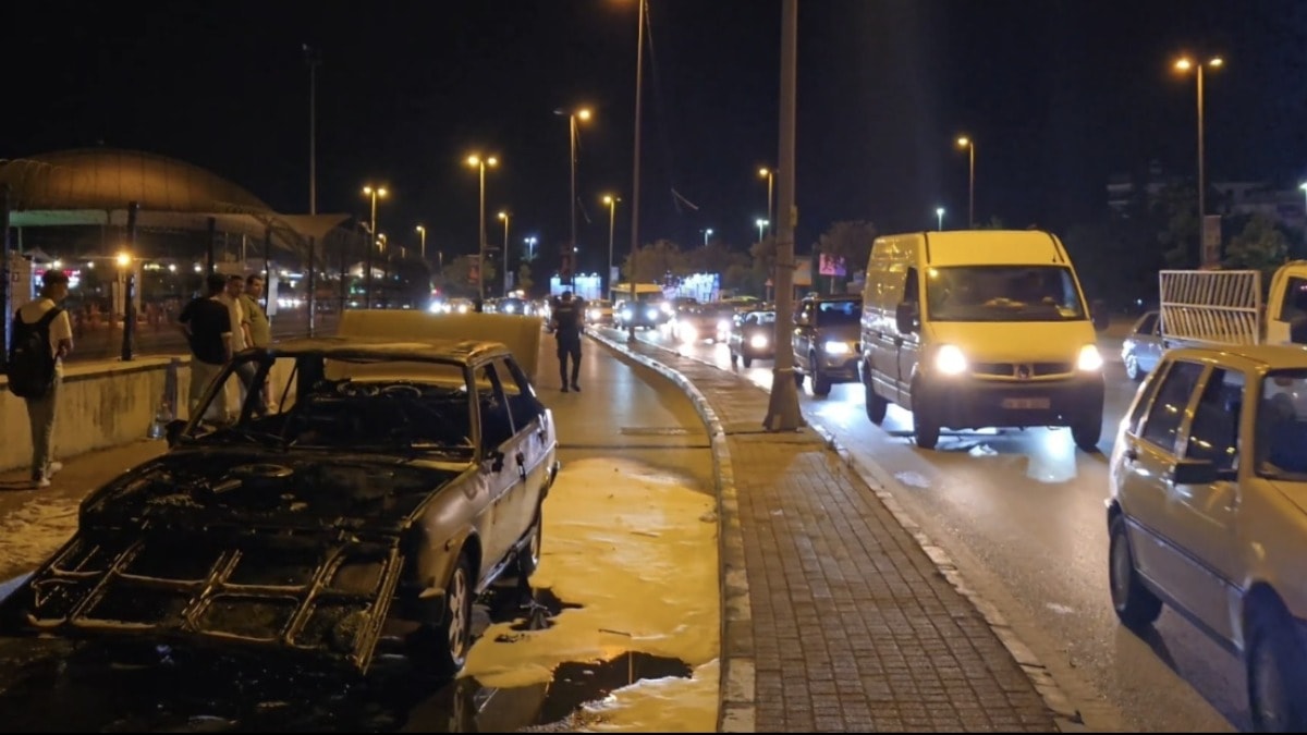 Alevleri gören sürücü aracını emniyet şeridine çekerek otomobilden uzaklaştı. Yangını gören diğer sürücülerin ihbarı üzerine olay yerine itfaiye ve polis ekipleri sevk edildi.
