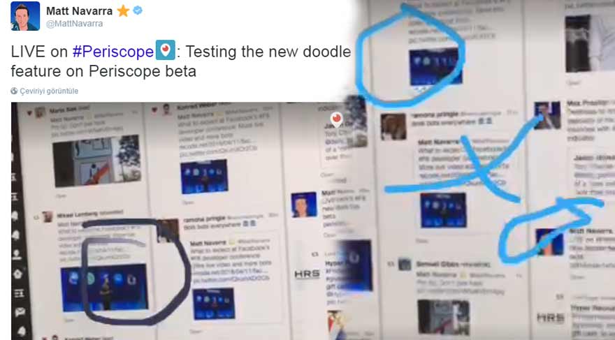 Henüz deneme aşamasında olan işlevi Twitter kullanıcısı Matt Navarra yayınladığı videoda gösterdi. Uygulamada yayın yapan kişi ekrana dokunarak basit çizimler yapabiliyor. Chip.com.tr'de yer alan habere göre Twitter yekilileri Techradar'a "Sketcihng'i küçük bir grup üzerinde deniyoruz. Bu işlev yayın yapanların yayın sırasında ekrana çizmelerini eğlenceli ve kolay bir hale getiriyor. Birkaç hafta içinde herkese ulaşmış olacak." şeklinde bir açıklama yaptı.