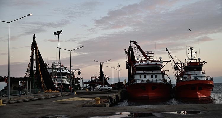 İki gündür etkili olan olumsuz hava koşulları ve fırtına uyarısı nedeniyle teknelerini doğal limana çeken balıkçılar, limanda teknelerin bakımı ve temizliğini, yıpranan ağların onarımını, yakıt ikmali yapıyor, ihtiyaçlarını gideriyor.