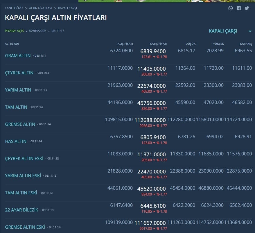 Gram gümüş ise ons gümüşte görülen düşüşlerin etkisiyle yönünü aşağı çevirdi. Gram gümüş sabah seansında 102,79 TL seviyesinden işlem görüyor.
