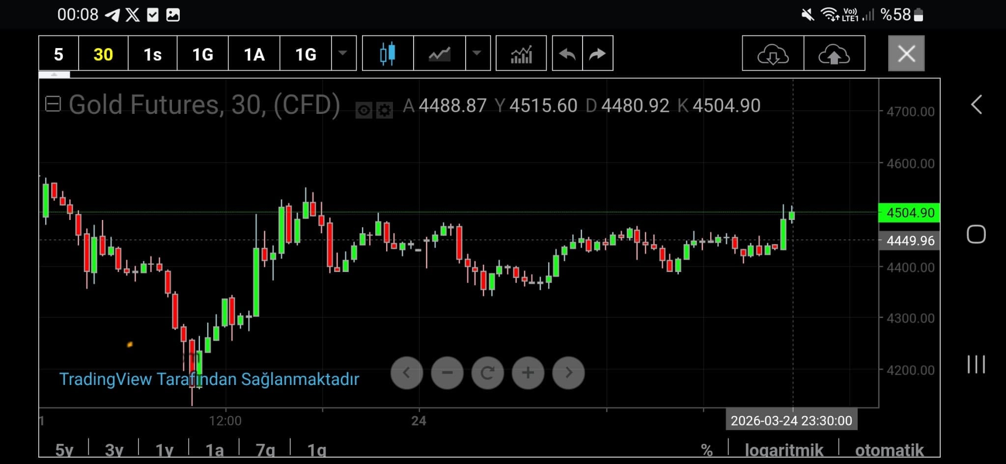 Ons altın haberlerin ardından 00.14'te 4 bin 504 dolara kadar yükseldi.