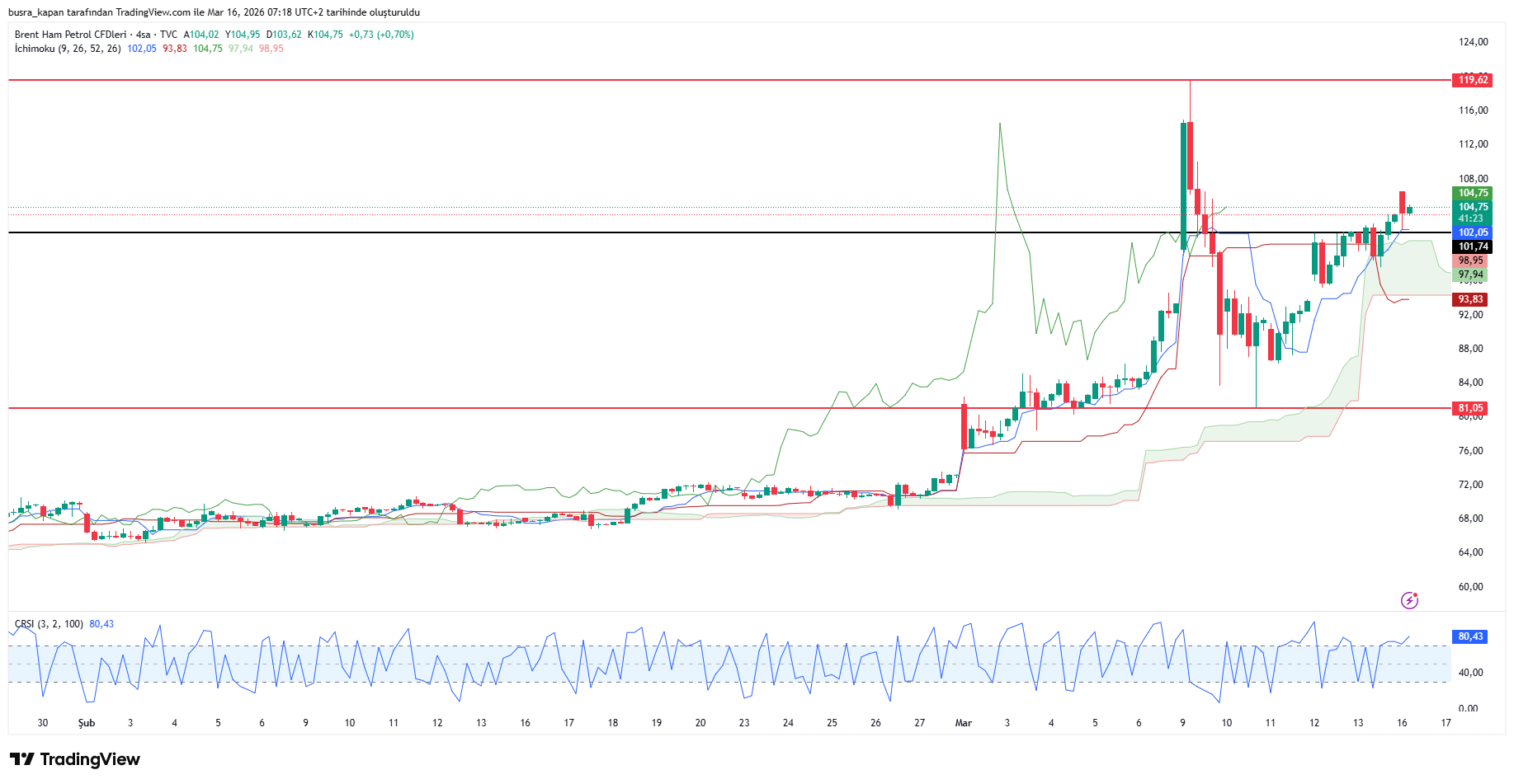Petrol fiyatları yeni haftaya yükselişle başladı. Dün gece seansında 106 dolara kadar yükselen petrol fiyatları bu seyrini korumaya çalışıyor. Brent petrol bugün sabah seansında 08.08'de 104 dolarda bulunuyor.
