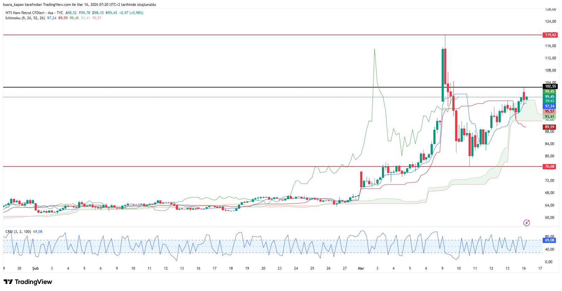 Ham petrolde de yeni haftada yükselişlerin olduğu görülüyor. Ham petrol yeni haftaya 102 dolardan başladı. Bugün sabah seansında 08.08'de 99 dolarda bulunuyor.