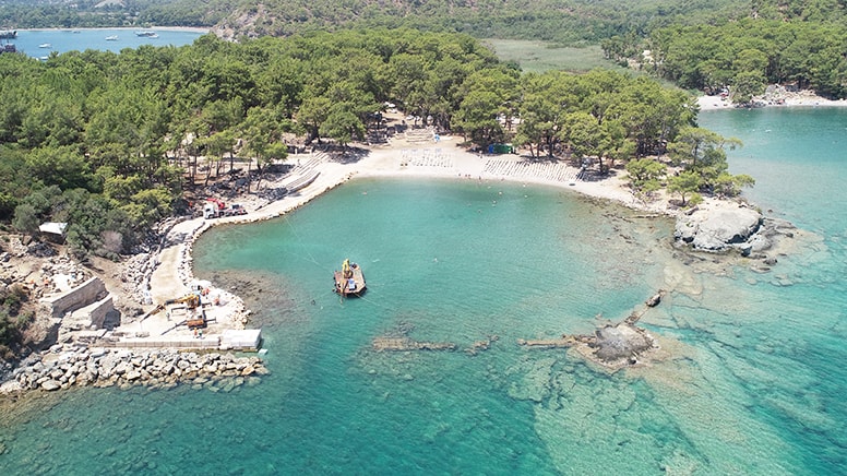 "Kültürel mirasın yönetim planı çerçevesinde ziyaretçi yönetim planı oluşturuyoruz. Önümüzdeki dönemde bunu da devreye alacağız. Burada bazı bölümler park yerine dönmüş durumda. Şimdi alanın biraz daha dışında park alanları oluşturacağız ve araçların buraya, bu kadar yakına gelmesini engelleyeceğiz. Burası sadece yaya trafiğine uygun hale gelecek. Aynı şekilde biliyorsunuz ki geçmiş yıllarda yan koylarda, Bostanlık ve Alacasu koylarında vatandaşların duş alabilecekleri, tuvalet imkanı ve soyunma kabinlerin olduğu küçük noktalar oluşturmuştu. Bunda da amaç işte buradaki yoğunluğun yan koylara kaydırılması. Yani aslında deniz ihtiyaçlarının ören yerinin içinde değil de hemen yandaki koylarda karşılanması. Ne vatandaş deniz keyfinden vazgeçsin, ne bizim arkeoloji ekibimiz çalışmalarından vazgeçsin. İkisi beraber yürütülen bir çalışma."