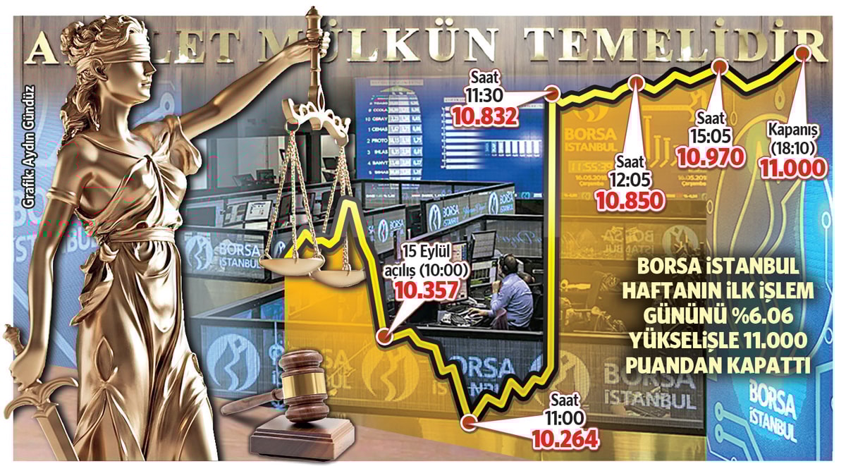 Borsa İstanbul’da bankacılık endeksi dakikalar içinde yükseliş kaydederken, TL’nin döviz karşısındaki değeri sınırlı da olsa toparlandı. Dolar 41.37 liralık rekorundan döndü ve günü 41.29 liradan tamamladı. Faiz cephesinde ise Eurobond ve Varlık Fonu tahvilleri prim kazandı; yerli ve yabancı yatırımcı ilgisi arttı. 2 yıllık tahvil faizleri yüzde 2 düşüşle yüzde 39’lu seviyelere geri döndü. BIST 100 yüzde 6.06 yükselişle 11 Mayıs 2023’ten bu yana en yüksek günlük artışını kaydederek 11 bin seviyesinden günü tamamladı. Bankacılık endeksi yüzde 6.06, holding endeksi yüzde 6.49 değer kazandı.