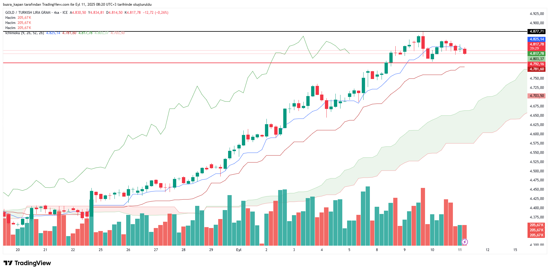 Gram altın, dolar/TL kurundaki yükseliş ve ons altındaki yukarı yönlü hareketlenmelerin etkisiyle kısmi yükselişler yaşanıyor. 9 Eylül Salı günü gram altın resmi rakamlarda 4 bin 877 liraya kadar yükselerek rekor kırdı. Bugün 08.16'da ise 4 bin 818 lirada bulunuyor.