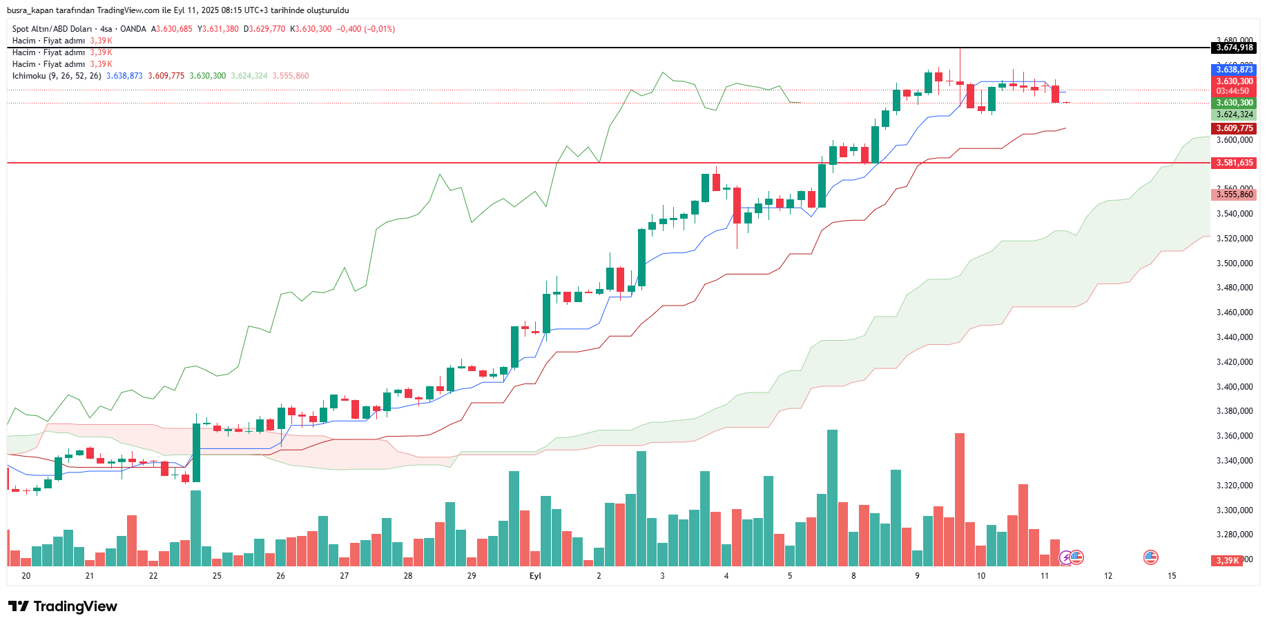 Yaşanan gelişmelerin etkisiyle, altın fiyatlarında kısmi yükselişlerin olduğu görülüyor. 9 Eylül Salı günü ons altın 3 bin 674 dolara yükselerek son zamanların rakorunu kırdı. Bugün sabah seansında 08.14'te 3 bin 629 dolarda bulunuyor.