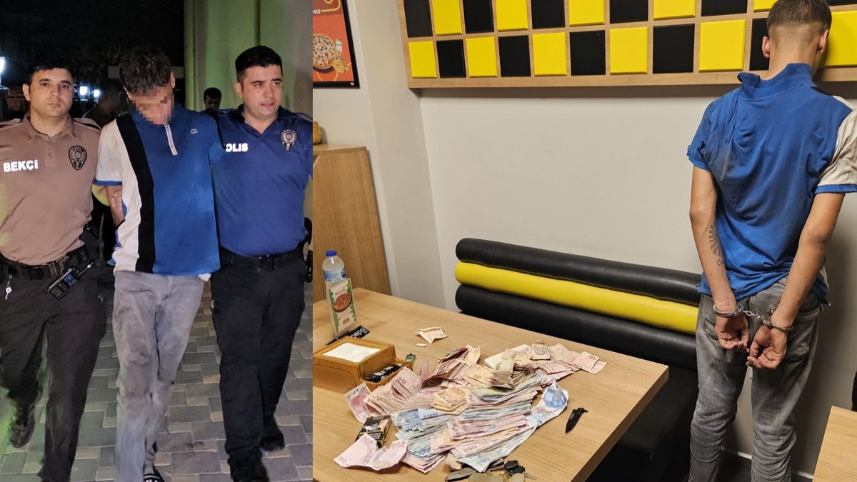 Adana'da girdiği pizzacıda kasadaki 18 bin lirayı çalan H.M.K. (17), dışarı çıkamadan polis tarafından suçüstü yakalandı.