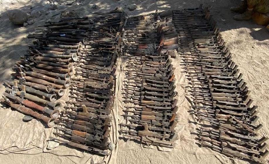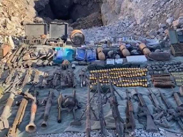 "247 AK-47 piyade tüfeği, 19 RPG-7 roketatar, 2 keskin nişancı tüfeği, 4 Dragunov keskin nişancı tüfeği, 1 av tüfeği, 1 pompalı tüfek, 4 bombaatar, 1 MG-3 makineli tüfek, 1 RPG-26 roketatar, 1 adet 60 milimetre havan, 70 el bombası, 1 Doçka uçaksavar silahı, 1 Zagros keskin nişancı tüfeği, 2 adet 7,62 milimetere PKMS makinalı tüfek, 4 M-16 piyade tüfeği, 20 AK-47 piyade tüfeği şarjörü, 1 RPG-7 roketatar antitank mühimmatı, 1 RPG-7 optik nişangah, 3 termal silah dürbünü, 2 adet 7,62 milimetre PKMS makinalı tüfek namlusu, 300 bombaatar mühimmatı, çok ayıda hafif ve ağır silah mühimmatı, 1 yangın söndürme tüpü, 1 kaynak makinesi, 7 termal şemsiye, 5 set halinde oksijen tüpü, 1 switch çoklayıcı, 2 sabit telefon, 1 ses kayıt cihazı, 1 Yaesu el telsizi, 2 Yaesu sabit merkez telsiz, 1 IP kamera, 1 kulaklık, kimyasal ışık çubukları, 1 tripod ayaklık, 1 güç kaynağı, 1 joystick kumanda, 1 havalandırma fanı çok sayıda örgütsel doküman." (DHA)